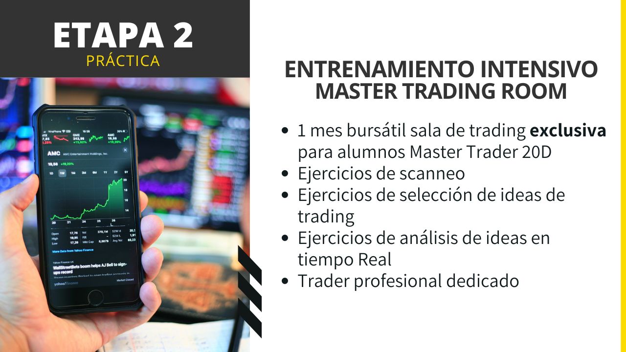 Clases online on demand, y sesiones de práctica en vivo en la sala Master Trader